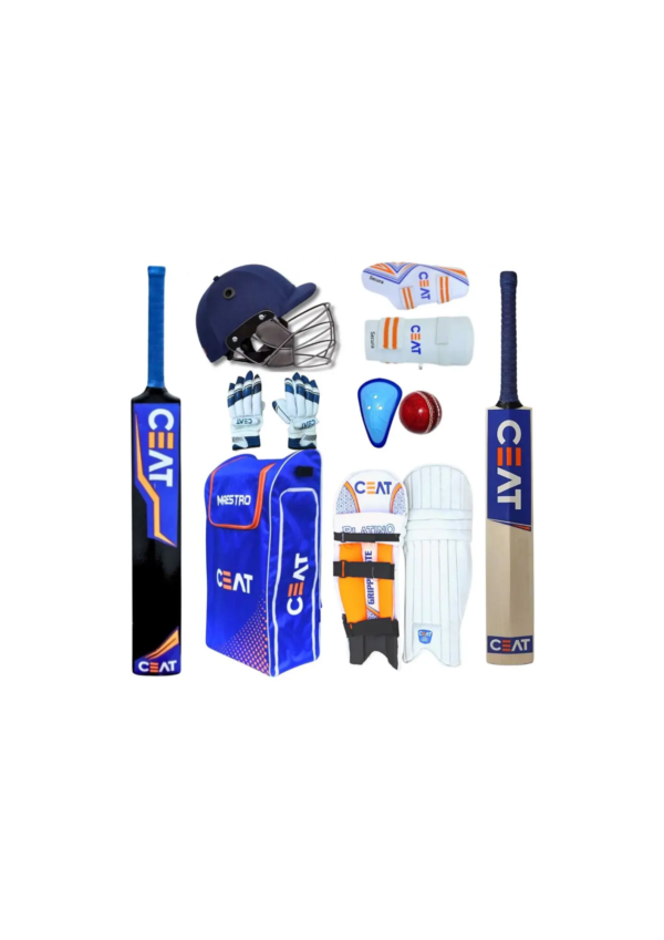 1 BAT, 1 PB bat, 2 gloves, 2 leg pad, 1 E-guard, 1 T-guard, 1 ball, 1 helmet, 1 ab guard, 1 bag
